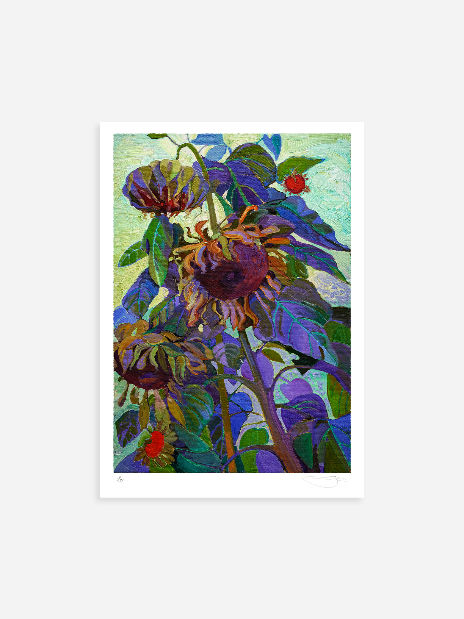 This fine art print faithfully reproduces the original painting, preserving its chromatic nuances, depth, and gestural character. The result is an edition of premium artistic value, intended for collectors who appreciate both the traditional process of painting and the excellence of contemporary printmaking.