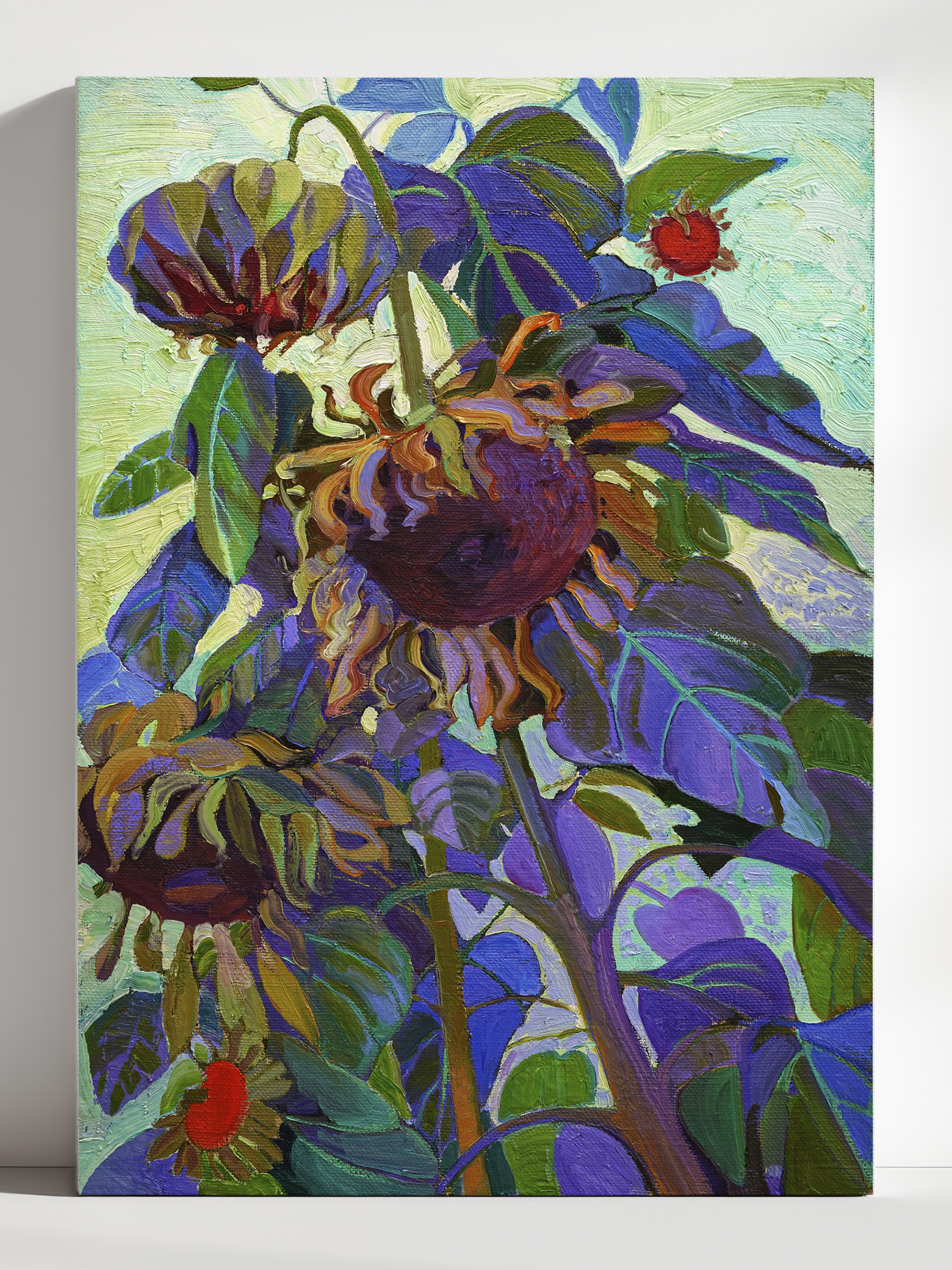 The paintings are created on museum-quality canvas, individually prepared by the artist in the studio.